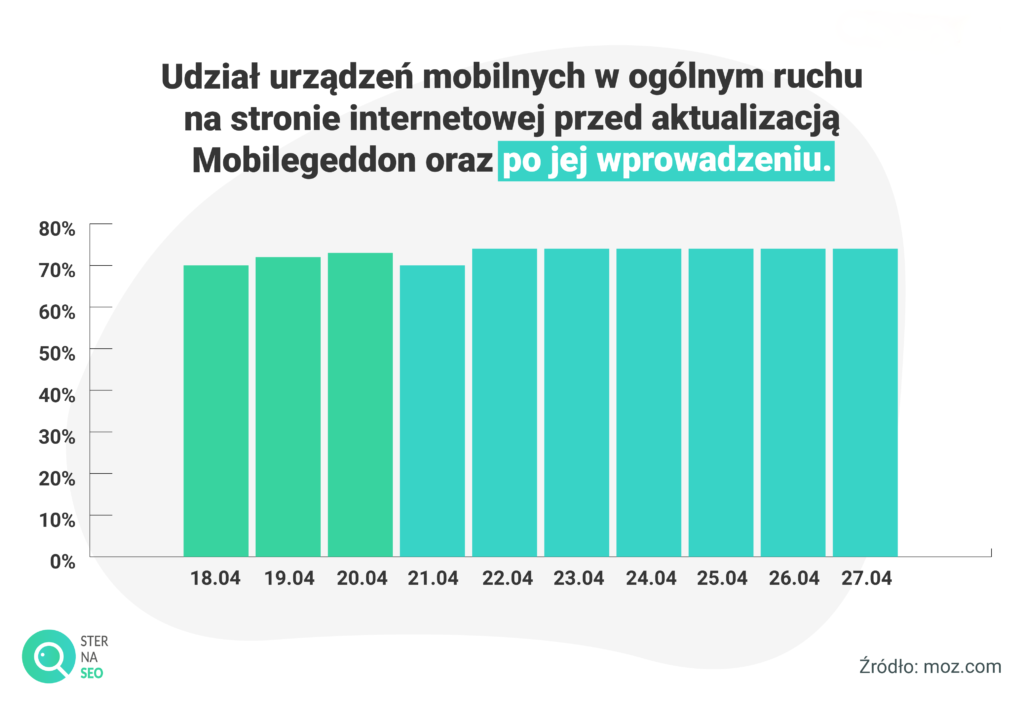 Właściciele stron internetowych funkcjonowali bez mobilnej wersji swojej witryny jeszcze jakiś czas po wprowadzeniu aktualizacji algorytmu Mobilegeddon. Okazuje się, że wbrew powszechnemu przekonaniu mówiącemu, iż stracą oni ponad 25 procent całkowitego ruchu, w rzeczywistości ruch ten nie zmalał aż tak bardzo. W przypadku części portali po wprowadzeniu aktualizacji algorytmu stronę nadal odwiedzało nawet kilka tysięcy użytkowników każdego dnia.