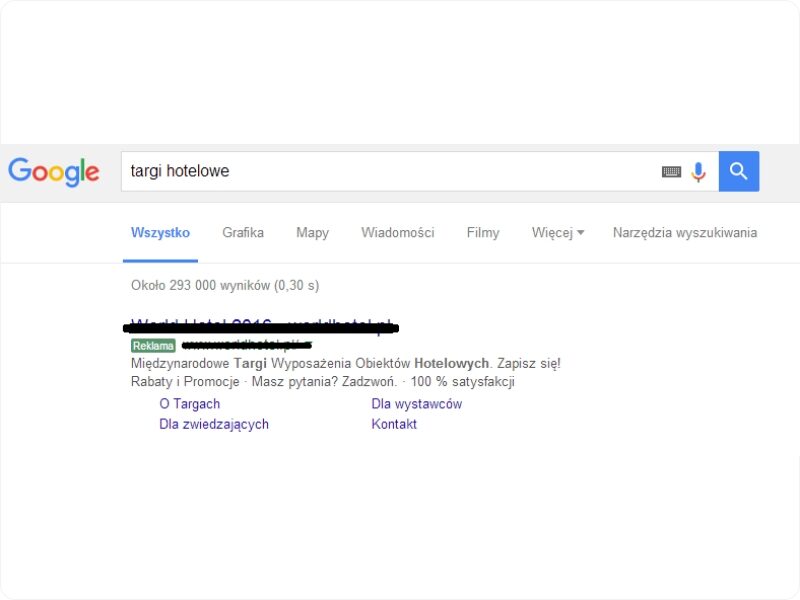 Najchętniej wykorzystywanym przez naszych Klientów rodzajem kampanii PPC (płatnej za kliknięcia– pay per click) są linki sponsorowane Google Ads. Ta platforma reklamowa udostępniona jest bezpośrednio przez Google. Umożliwia sprawne umieszczenie sponsorowanego wyniku wyszukiwania na pierwszej stronie wyszukiwarki nad wynikami organicznymi lub pod nimi. To ta odpowiedź, której internauta oczekuje na swoje własne zapytanie.