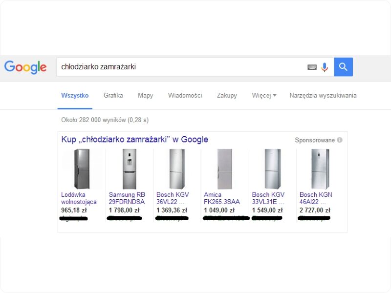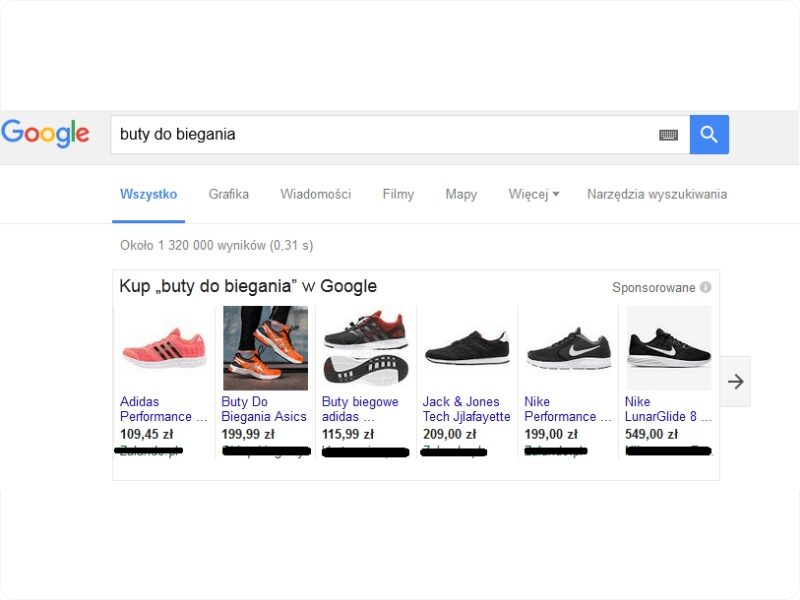 Jest to kampania w wyszukiwarce wykorzystująca listy produktów. Ten typ kampanii dostarcza internautom szczegółowych informacji, jeszcze przed kliknięciem . To rozwiązanie skierowane do sklepów internetowych. Kampania ta pojawia się na stronie wyników wyszukiwania Google, wraz z widocznym zdjęciem produktu, szczegółową nazwą, ceną oraz nazwą sklepu.